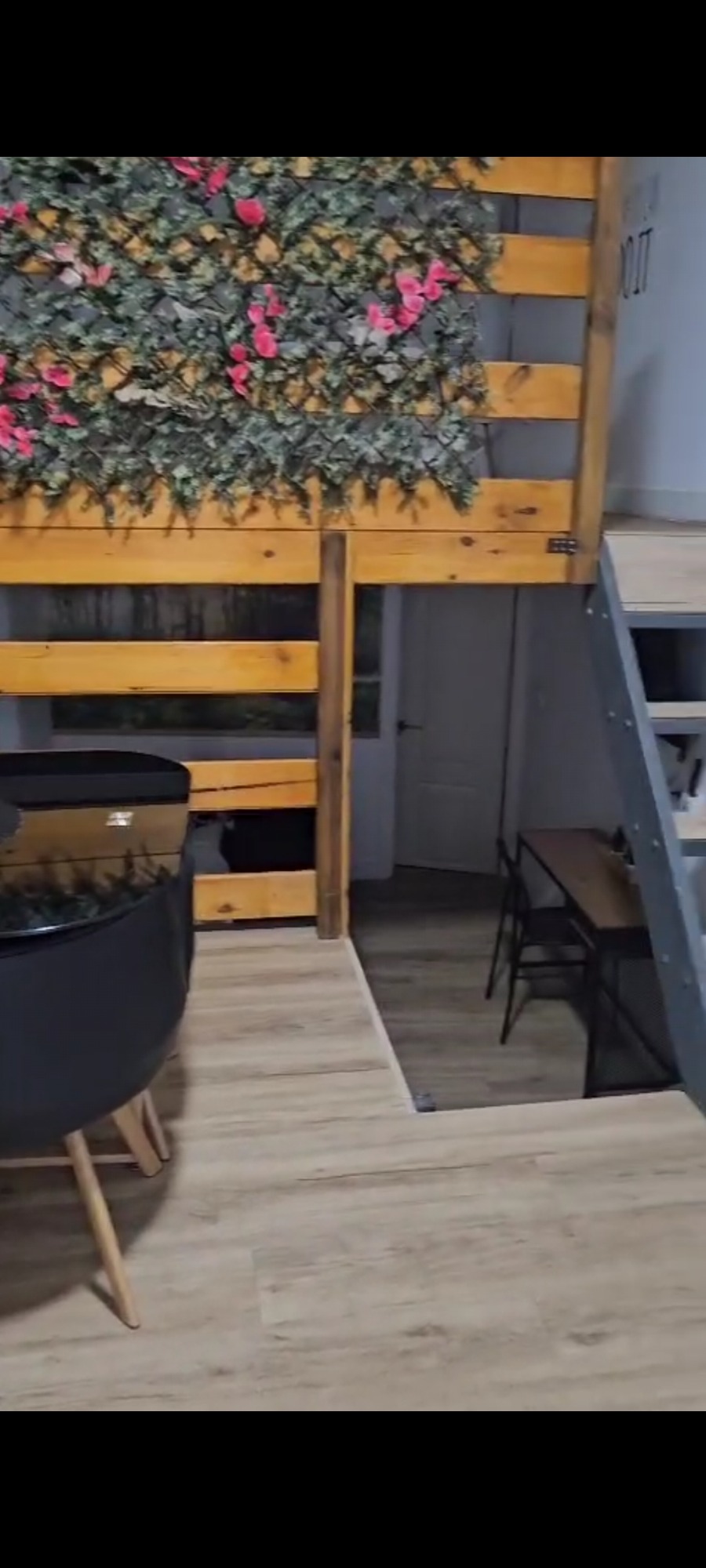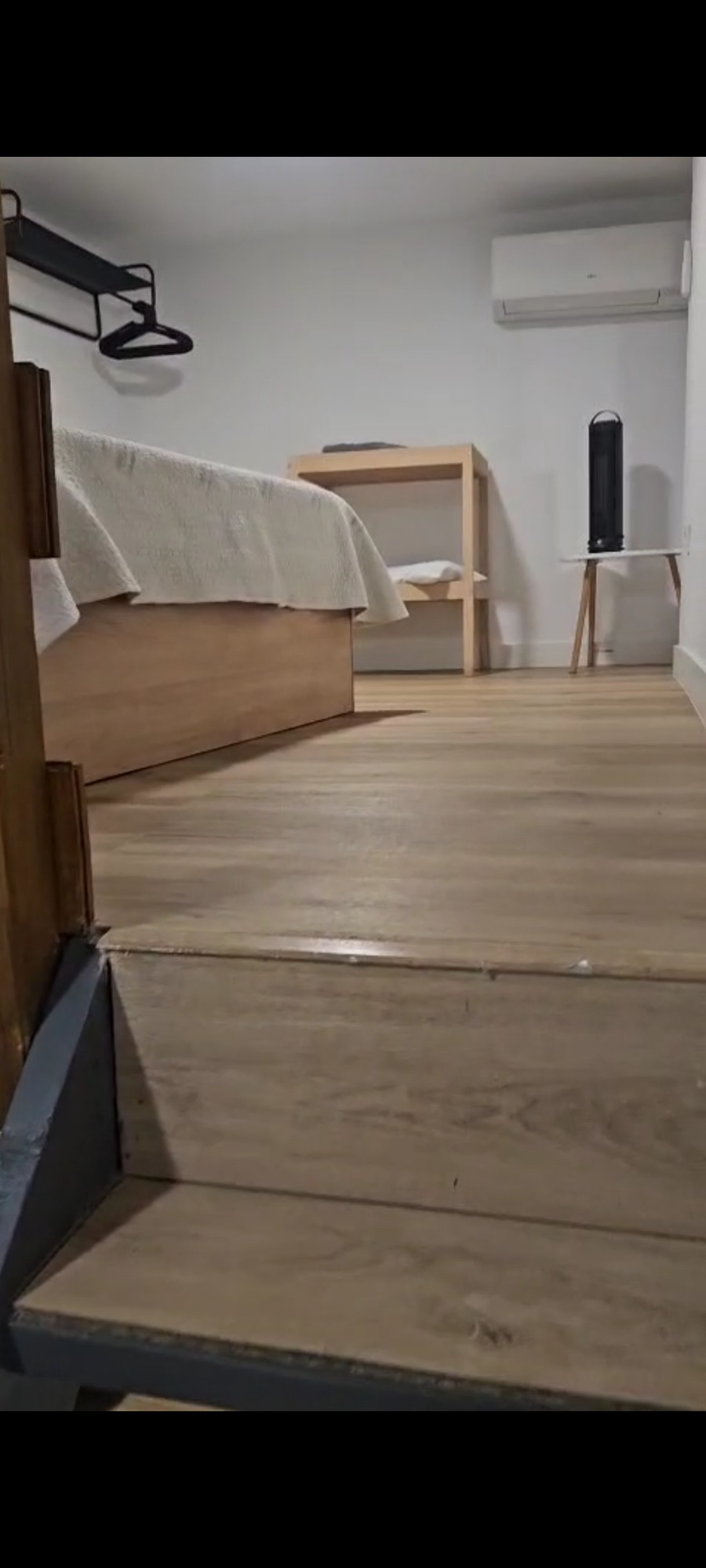 Het appartement bestaat uit drie lagen. Het slaapgedeelte bevindt zich op de 3de laag en heeft een maximale hoogte van 2 meter.